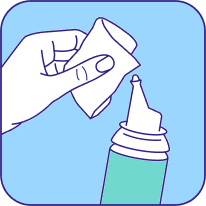 Наклонить голову набок. Снять защитный колпачок с насадки-распылителя и ввести наконечник насадки-распылителя баллона в носовой проход, находящийся сверху. В течение нескольких секунд промыть носовую полость.