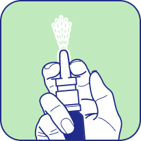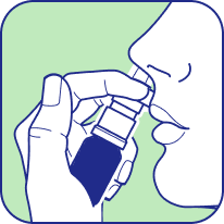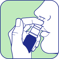 Во время впрыскивания нужно легко вдохнуть носом. Одно впрыскивание в каждый носовой ход до 3-4 раз в день.