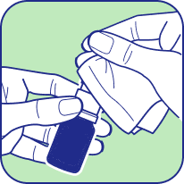 Распылить препарат путем нажатия на основание распыляющей насадки в течение