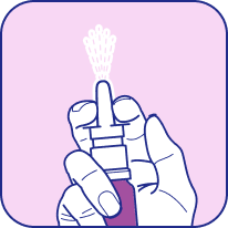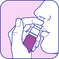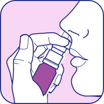 Распылить препарат путем нажатия на основание распыляющей насадки в течение 1 секунды